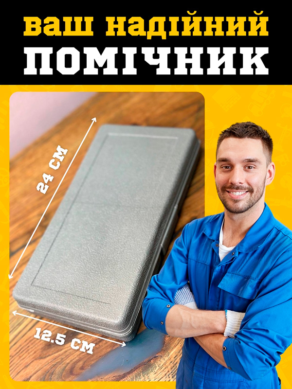 Це особливо корисний набір під час ремонту побутової техніки, автомобіля або складання меблів. Кожен елемент має своє місце у кейсі, що забезпечує порядок і зручність у зберіганні та транспортуванні.